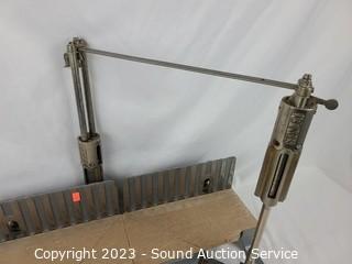388: Lot's including; Heavy Duty 110V 6" Jointer, Central Machinery Drill Press, Central Machinery 4" Belt, 6" Disc Sander, Wood Lathe, Rolling Kitchen Cart, Origami 4-Tier Steel Utility Shelf, Curio Cabinets, Vtg. Mahogany Wardrobe Cabinet, Magnavox AM Radio/Record Player Cabinet, Antique Stamford Kitchen Queen Cabinet, Assorted Sports & Other Apparel, Men's 2pc Suits, Starbucks Mugs, 3D Printer, Vtg. Radio Transceivers, Apple iMac Computers, Shaper Cutter Bits, Various Hand Tools, Clamps, Hardware, Coleman Lanterns, Bicycles, Weight Bench, Row Machine, Music Reels, Vtg. Radio Equipment, Lighting, Collectibles, Starbucks Mugs & Much More!!!