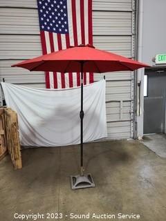 Lot #0107: 8ft Patio Umbrella w/Cast Iron Base