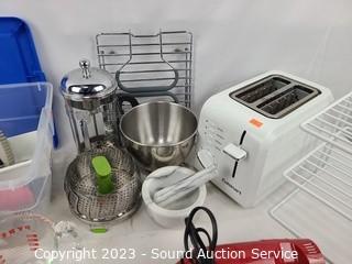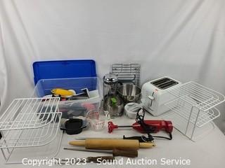 356 Lots including; Abbyson Zayne Leather Theater Power Recliners, Wood Framed Futon Sofa/Bed, Proform Carbon TL Pro Shox Incline Treadmill, Assorted Artwork, Natural Pine cabinet, Wood Workbench, Concrete Pillar Plant Stands, Teak 3-Drawer Cabinet, Pine Chest, Antique Marble Top 2-Drawer Chest, Vtg. Queen Anne Mahogany Highboy Dresser, Stearns & Foster Pillowtop King Bed, Vtg. Hammond Elec. Organ & Organ Bass Pedals, Sound Equipment, Cast Iron Skillets/Dutch Ovens, Assorted Kitchen & Cookware, Nice Husky Rolling Tool Chest Loaded w/Tools, Assorted Tools, Vtg. Radio Transceivers, Various Literature, CD's/DVD's, Pair of EV 3-Way Stage System Passive Speakers, Clothing, Footwear, Personal Hygiene Products, Electronics, Bedding, Home Improvement & So Much More!!!