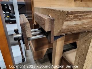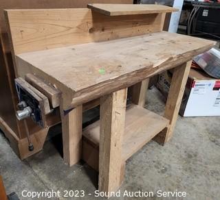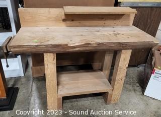 Lot #0059: Homemade Natural Wood Shop Workbench