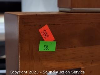 356 Lots including; Abbyson Zayne Leather Theater Power Recliners, Wood Framed Futon Sofa/Bed, Proform Carbon TL Pro Shox Incline Treadmill, Assorted Artwork, Natural Pine cabinet, Wood Workbench, Concrete Pillar Plant Stands, Teak 3-Drawer Cabinet, Pine Chest, Antique Marble Top 2-Drawer Chest, Vtg. Queen Anne Mahogany Highboy Dresser, Stearns & Foster Pillowtop King Bed, Vtg. Hammond Elec. Organ & Organ Bass Pedals, Sound Equipment, Cast Iron Skillets/Dutch Ovens, Assorted Kitchen & Cookware, Nice Husky Rolling Tool Chest Loaded w/Tools, Assorted Tools, Vtg. Radio Transceivers, Various Literature, CD's/DVD's, Pair of EV 3-Way Stage System Passive Speakers, Clothing, Footwear, Personal Hygiene Products, Electronics, Bedding, Home Improvement & So Much More!!!
