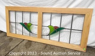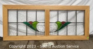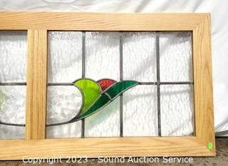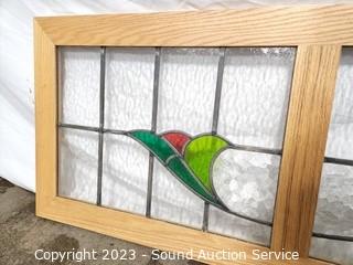 Lot #0018: Wood Framed Leaded Stained Glass Window Decor
