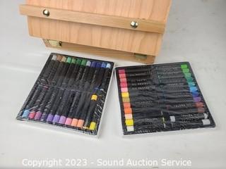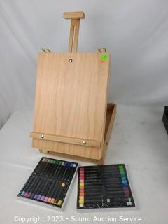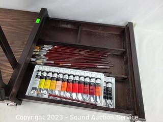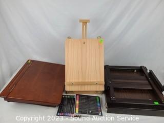 Lot #0095: 2 Art Easels, Lap Desk & Some Paint Supplies
