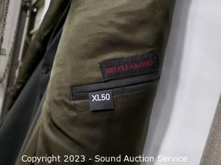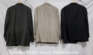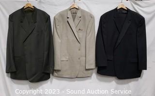 Lot Details: Andre Villard Paris 100% Wool 3pc, Blazer S:XL50, Vest, Slacks S:XL50. Ralph Lauren Blazer S:50L, Craft & Barrow S:40/32. Pronto Uomo 100% Wool Blazer S:52R, Slacks S:42W. All with storage bags.