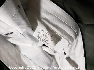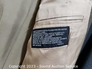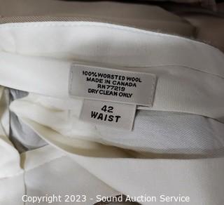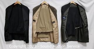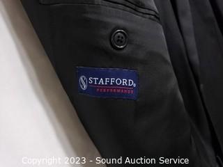 Lot Details: Stafford Blazer S:48R, Dockers Slacks S:40W. J.Ferrar Blazer S:46R (wool/polyester), Pronto Uomo Slacks S:42W. Stafford Blazer S:44L, Joseph Feiss Slacks S:42/32. All with storage bags.