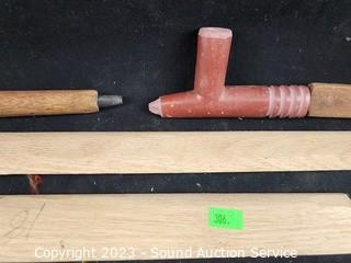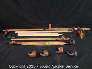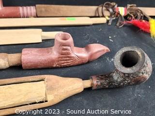 Lot Details: One of the clay pipes is signed "Dancing Flower". Approx. 19" to 24" long.