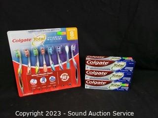 Lot #0211: 8pk Colgate Toothbrushes, 3 Toothpaste