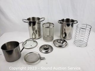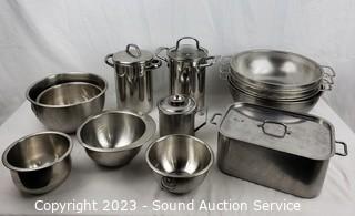 Lot Details: Mixing bowls, strainers, pasta pans & more. Refer to photos for lot contents.