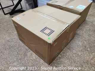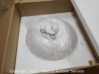 Lot Details: Matte white, dark bronze accents. Model 60401, Serial B09D53QH4R. Approx. 12" H x 22" Dia, 18" hang. Works, don't see any issues. ATTN: Stock images, when included, are representations of the items and are not guaranteed to be exactly what is in the lot.