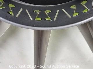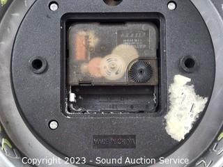 Lot Details: 15" H x 12" W. A lot of corrosion in battery housing, no power. May work if cleaned, may need replaced. Missing 2 of the metal burst at the bottom.
