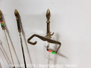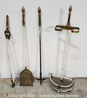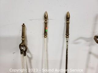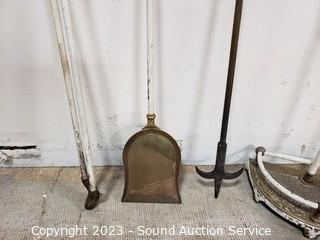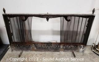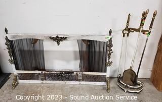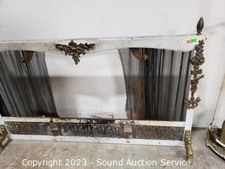 Lot #0029: Vtg. Metal Fireplace Screen & Fire Poker Set