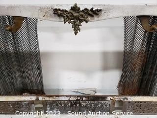 Lot Details: Various wear to white finish, brass accents. 21" H x 38" W fireplace screen.