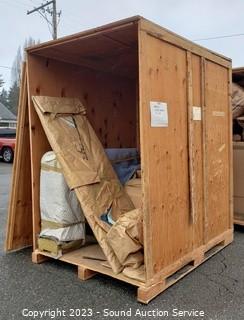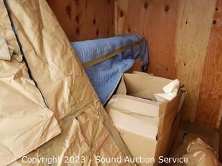 8 vaults, each vault is approx. 70" & 95" H x 60" W x 84" D. Refer to photos for vault contents, what you see in the photos is what we see, we have not gone through vaults. Preview online only, contents of vaults may not be gone through. Vaults themselves & blankets not included. As is, no refunds. $100, deposit required at the close of the auction upon winning a vault, refunded after complete removal of vault contents.