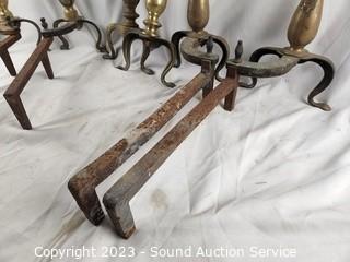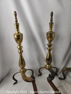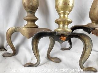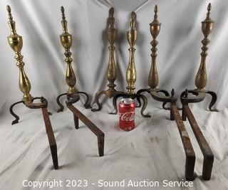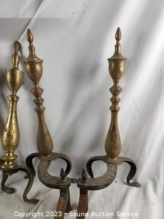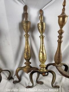 Lot #0174: 3 Sets Rustic Brass Andirons