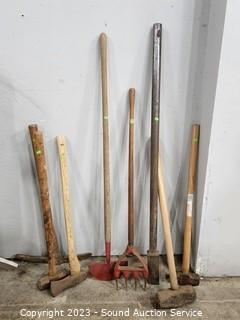 Lot #0049: 8pc Sledgehammers, Pickaxe & More