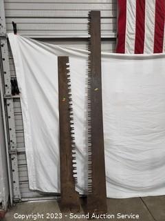 Lot Details: Various weathering, rust & wear, unknown if in running condition. Comes with 5.5ft & 7ft saw blades.