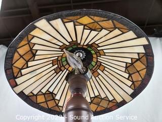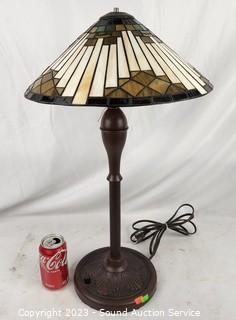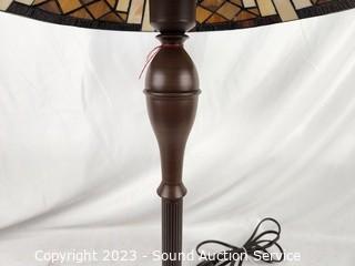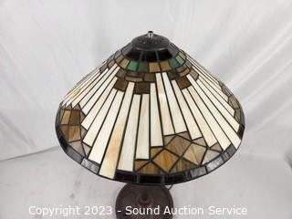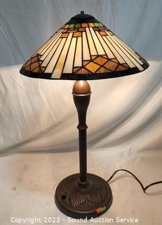 Lot #0081: Bronze Finish Stained Glass Shade Dual Light Lamp