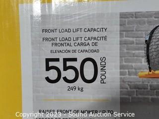 Lot Details: 550 lbs front load lift capacity. No handle for jack portion of the unit.