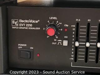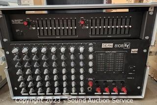 Lot Details: Equalizer Model EVT2210, Mixer 8108. Both units have power, untested beyond that. Mounted in storage, travel case. 14" H x 20" x 10".