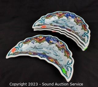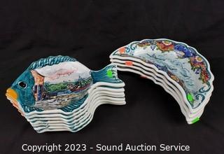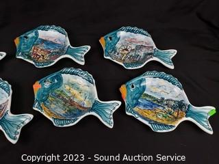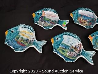 Lot Details: 7 fish plates, 10" x 7" & crescent 10.5" x 6.5".