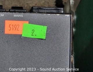 Lot Details: Has power, all 1/4" channel inputs are receiving signal, did not hook up to speakers, one knob missing top cap. Appears to be functioning as intended. Some foam residue from case stuck to it, looks like it will clean off. Comes with power cord & case. 17" W x 16" D x 6" H.