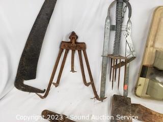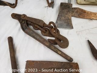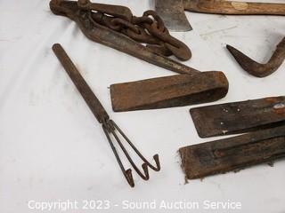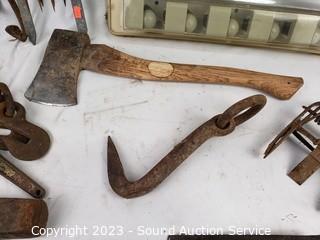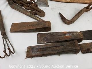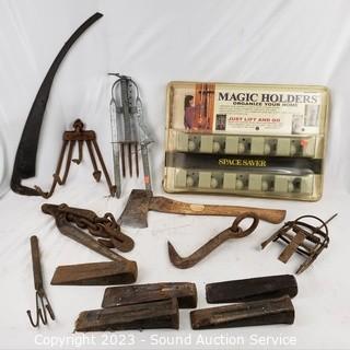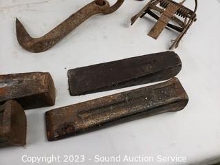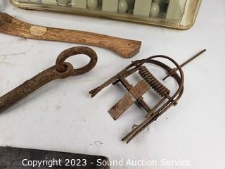 Lot #0142: Splitting Wedges, Axe, Small Animal Traps & More