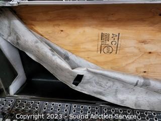 Lot Details: Unit has power. 1/4" jack line inputs are receiving a signal, appears to be functioning as intended. Tape label residue, lining in case coming out, foam deteriorating. 41" x 15".