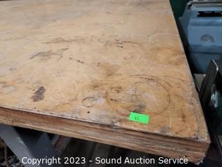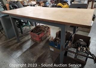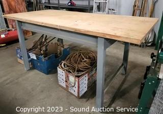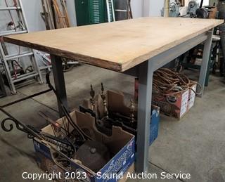 Lot #0045: Wood Top Steel Frame Workshop Table