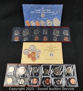 Lot #0169: 1990 & 91 US Mint P&D Uncirculated Coin Sets