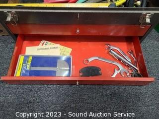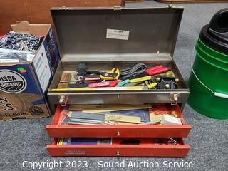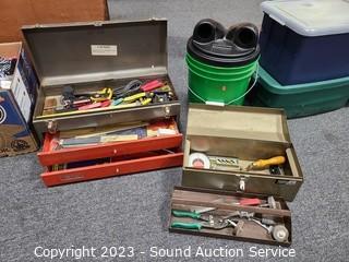 Lot #0149: 2 Steel Toolboxes w/Tools & 5 Gal. Bucket
