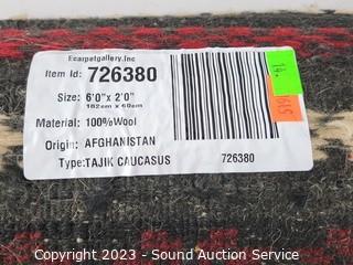 Lot #0014: Afghanistan Hand Wove 100% Wool 6ft x 2ft Rug
