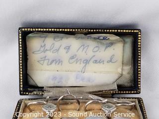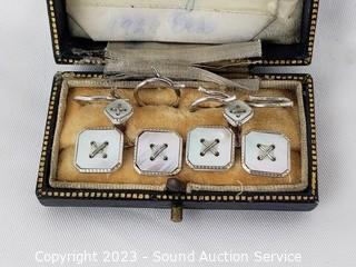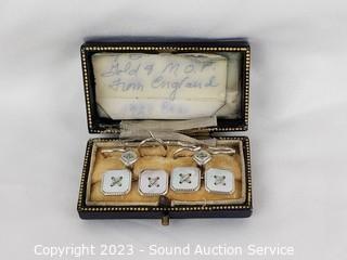 Lot #0371: Antique 9K White/Gold & Mop Cufflink & Button Set