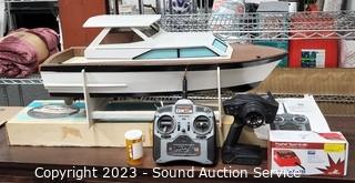 Lot Details: Untested. Yacht comes with stand. Comes with 35W peak Ni-MH battery charger, Spektrum DX5e & DX2e remote, manual. 13" H x 31" L x 11" yacht.