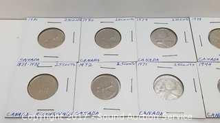 Lot #0005: (17)1960-81 Canadian 25 Cent Coins.