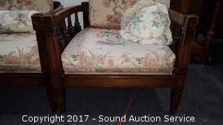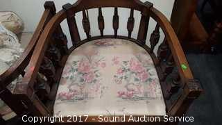Appears To Have Been Reupholstered At One Point, Cherry Blossom Tree Design. 15" to seat, 25" wide seat, 26" deep seat.