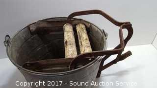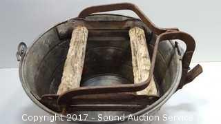 Lot #0117: Antique Galvanized Mop Bucket W/ Ringer