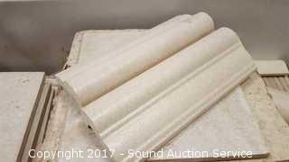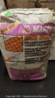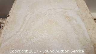 Also Comes With A Bag Of Tile Grout. All boxes appear to be full. All tiles appear to be mostly intact. Tiles are white stucco texture. Comes with tile corner tiles in cooler.