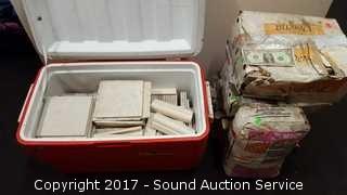 Lot #0120: Cooler Full & 3 Boxes Of 6x6" Ceramic Tiles