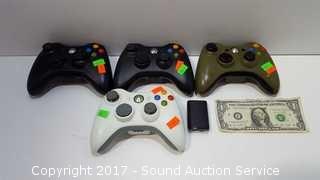 Lot #0038: Four Xbox 360 Wireless Controllers.