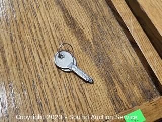 Lot Details: Appear to be solid wood construction. Various wear to finish, one drawer missing rails. Locking with 2 keys. 28" H x 16.5" x 16".
