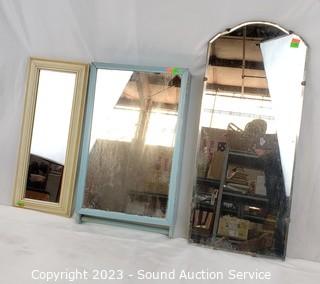 Lot Details: 17" H x 11" W x 3.75" D medicine cabinet, 24" H x 10" W & 18.5" H x 7" mirrors.