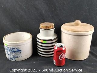 Lot #0068: 3pc Vtg. Pottery Crock Containers