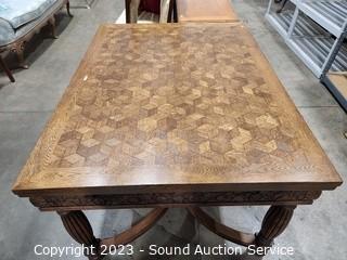 356 Lots including; Antique Tessellated Carved Oak Table, Victorian Sofa, Vintage Maple Beveled Vanity Mirror, Ikea Hesstun King Mattress w/Box Springs, Black Steel Mesh Patio Table w/4 Chairs & Umbrella, File Cabinets, Vtg. Wood Chests, Sound Equipment, Cast Iron Cookware, Uranium Glassware, Colorful/Crystal/Clear Glassware, Milk Glass, Fine China, Pottery, Vtg. Tins, Woven Baskets, Clocks, Antique/Vintage Literature, Assorted Kitchen/Cookware, Assorted Tools/Hardware, Vtg. Holiday Ornaments/Decor, Vtg. Radio Tube Equipment, Household Goods, Rugs & Much More!!!