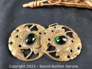 Lot #0210: Assorted Antique Buckles, Beaded Collars, Buttons