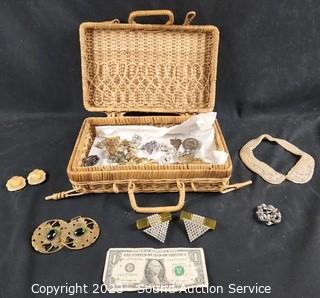 Lot Details: With wicker chest 3.75" x 12.25" x 7.5".