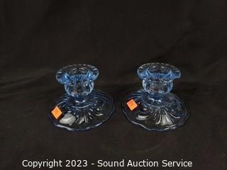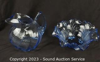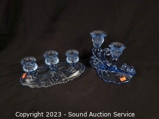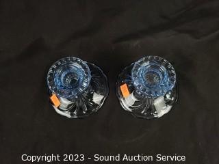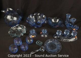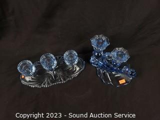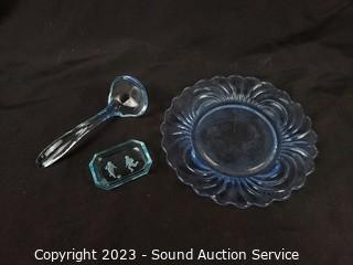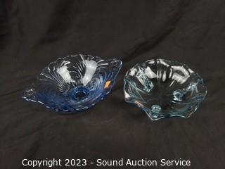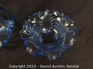 Lot #0076: Assorted Beautiful Iridescent Blue Glassware Decor