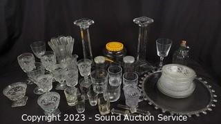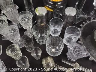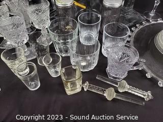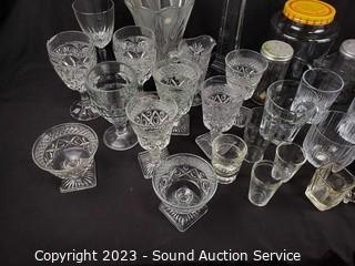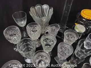 356 Lots including; Antique Tessellated Carved Oak Table, Victorian Sofa, Vintage Maple Beveled Vanity Mirror, Ikea Hesstun King Mattress w/Box Springs, Black Steel Mesh Patio Table w/4 Chairs & Umbrella, File Cabinets, Vtg. Wood Chests, Sound Equipment, Cast Iron Cookware, Uranium Glassware, Colorful/Crystal/Clear Glassware, Milk Glass, Fine China, Pottery, Vtg. Tins, Woven Baskets, Clocks, Antique/Vintage Literature, Assorted Kitchen/Cookware, Assorted Tools/Hardware, Vtg. Holiday Ornaments/Decor, Vtg. Radio Tube Equipment, Household Goods, Rugs & Much More!!!