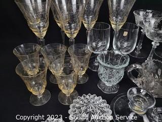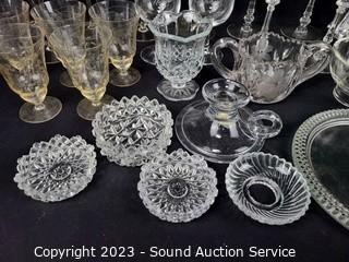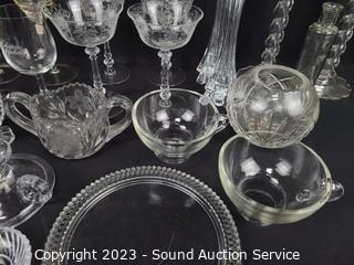 356 Lots including; Antique Tessellated Carved Oak Table, Victorian Sofa, Vintage Maple Beveled Vanity Mirror, Ikea Hesstun King Mattress w/Box Springs, Black Steel Mesh Patio Table w/4 Chairs & Umbrella, File Cabinets, Vtg. Wood Chests, Sound Equipment, Cast Iron Cookware, Uranium Glassware, Colorful/Crystal/Clear Glassware, Milk Glass, Fine China, Pottery, Vtg. Tins, Woven Baskets, Clocks, Antique/Vintage Literature, Assorted Kitchen/Cookware, Assorted Tools/Hardware, Vtg. Holiday Ornaments/Decor, Vtg. Radio Tube Equipment, Household Goods, Rugs & Much More!!!