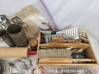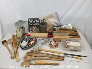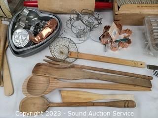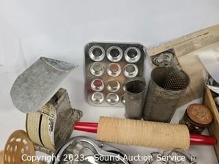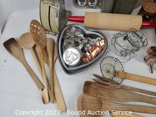 Lot Details:  Roller pin, baking pans, scale, utensils etc.  Refer to photos for lot contents.