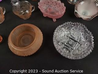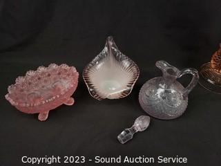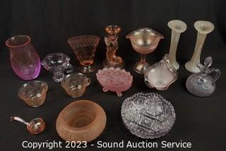 356 Lots including; Antique Tessellated Carved Oak Table, Victorian Sofa, Vintage Maple Beveled Vanity Mirror, Ikea Hesstun King Mattress w/Box Springs, Black Steel Mesh Patio Table w/4 Chairs & Umbrella, File Cabinets, Vtg. Wood Chests, Sound Equipment, Cast Iron Cookware, Uranium Glassware, Colorful/Crystal/Clear Glassware, Milk Glass, Fine China, Pottery, Vtg. Tins, Woven Baskets, Clocks, Antique/Vintage Literature, Assorted Kitchen/Cookware, Assorted Tools/Hardware, Vtg. Holiday Ornaments/Decor, Vtg. Radio Tube Equipment, Household Goods, Rugs & Much More!!!